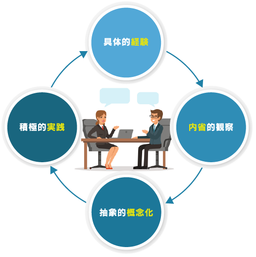 自身にとっての新たな取り組みは勇気と根気が必要となります。コーチが伴奏者として付き添い、励ましながらクライアントの経験学習のサイクルを回すことで、気づきや学びを確かなものとし新たな思考や行動の獲得を支援します。